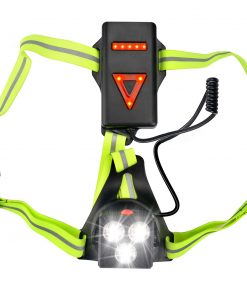 The LED Running light is super bright, combined with a red warning at the back. The bright light perfectly illuminates the road or path ahead, to protect you and allows you to see potential dangers in the dark . Rear warning red light at the back also allows others to see you.